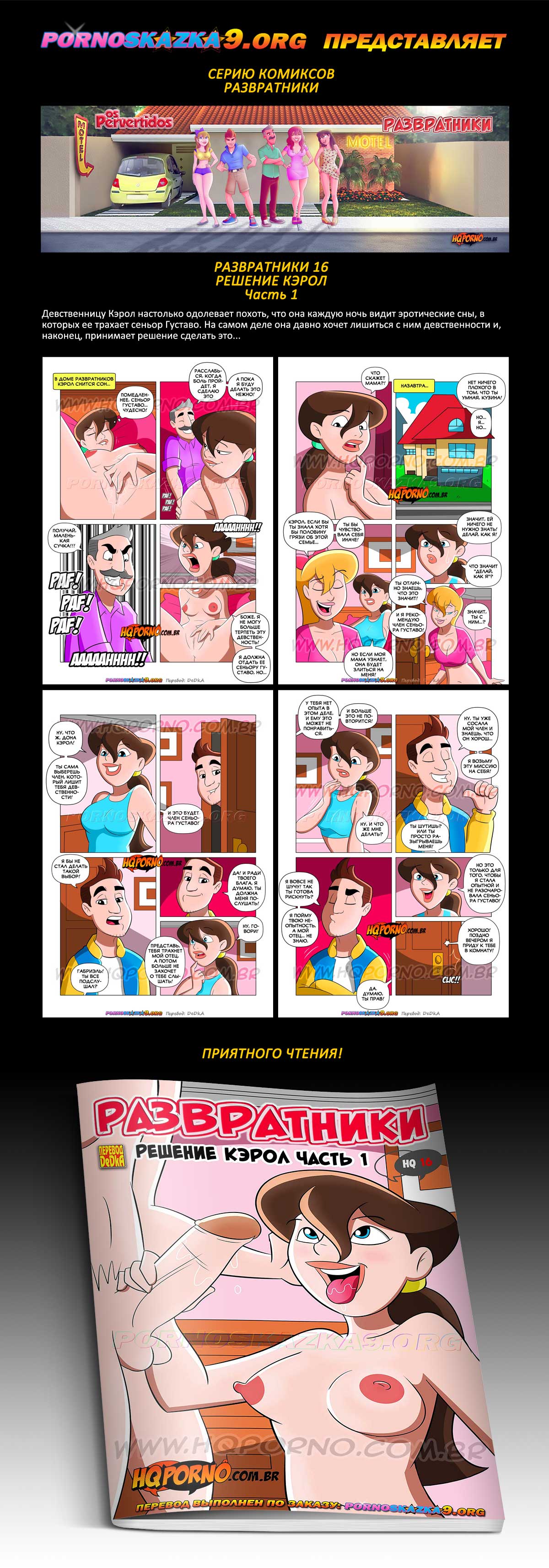 Порно комикс Развратники. Часть 16: Решение Кэрол. (Часть 1). Девственницу Кэрол настолько одолевает похоть, что она каждую ночь видит эротические сны, в которых ее трахает сеньор Густаво. На самом деле она давно хочет лишиться с ним девственности и, наконец, принимает решение сделать это…